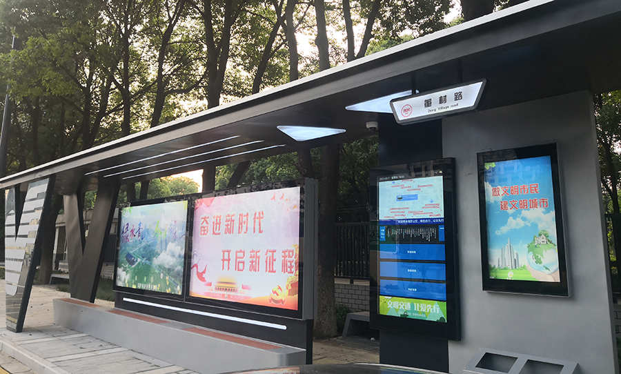 江苏嵌入式65寸电子站牌:65寸户外高亮lcd屏,预报站系统,信息发布系统等,配备200万像素的监控摄像头,硬盘录像机,事实查看电子站牌周边情况。