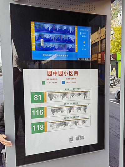 安徽嵌入式32寸屏电子站牌:32寸LCD户外高亮屏,预报站系统,信息发布系统等,配备200万像素的监控摄像头,硬盘录像机,事实查看电子站牌周边情况。